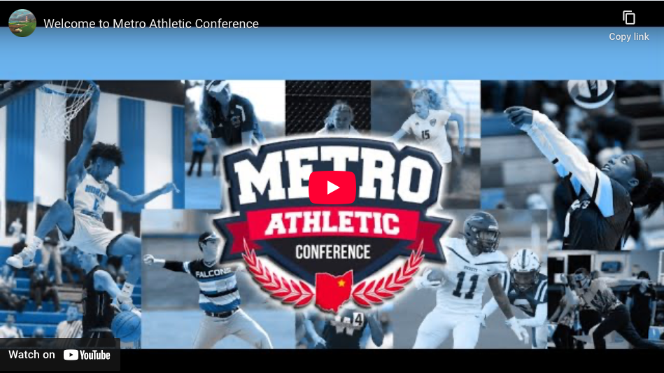 The Metro Athletic Conference in started in 2020 and is an Ohio High School Athletic Association (OHSAA) athletics conference in Northeast Ohio consisting of the following schools: Cloverleaf, Coventry, Cuyahoga Falls, Field, Norton, Ravenna, Kent Roosevelt, Springfield, Streetsbor, Tallmadge and Woodridge. Click on the logo to go to their school website.